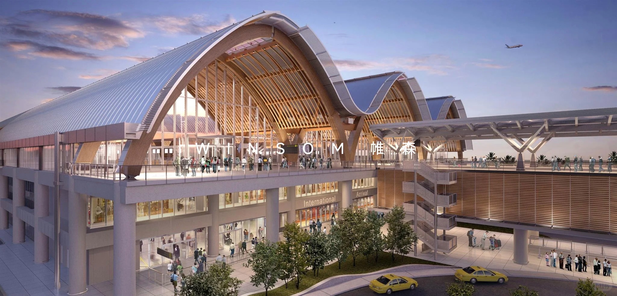 Cebu International Airport, Philippines is the main international airport in the Visayas region. Terminal 2 is designed with multiple arches spliced together. A large number of solid wood strips are used as channel decorations under the arches, making its interior style full of natural style. The lower part of the wooden ridge is matched with the smooth transition of the K12 curved Kellogg panel ceiling of Winsom, making the interior contour lines more streamlined and smooth, adding more modern elements to the entire interior space. The EIC25A aluminum honeycomb panel system is used for the exterior wall decoration of Terminal 2 of Cebu Airport. It adopts a fastener-type installation method to meet the needs of cold and hot expansion of the curtain wall, so that the decorative surface can maintain its high flatness decorative effect for a long time.