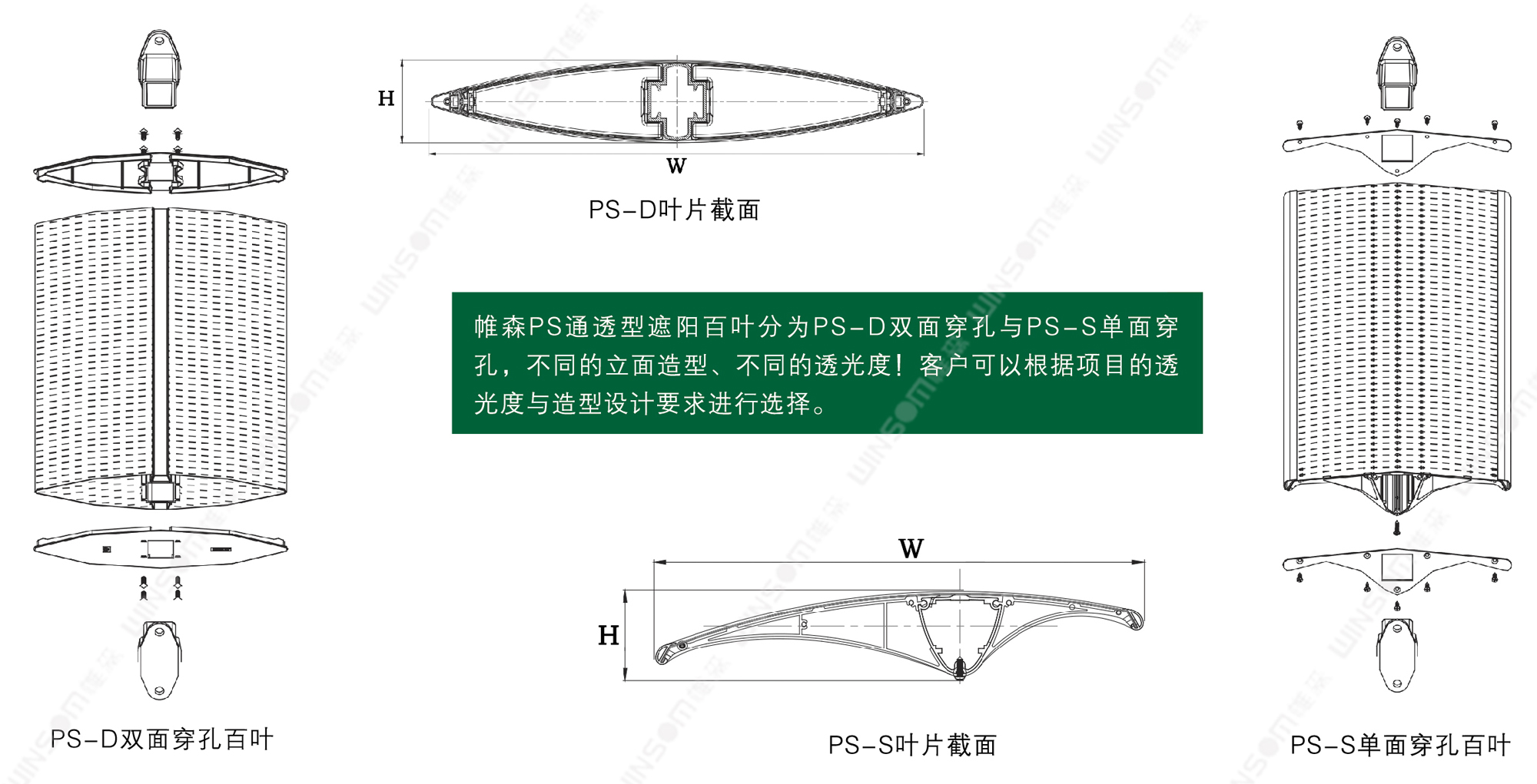 PS通透型遮阳百叶,是一款集遮阳、装饰于一体的建筑装饰材料,百叶表面特殊金属冲孔工艺,既能有效地过滤太阳辐射,调节光线、防止炫光、柔化太阳光,又能让您感受隔帘观景的美好意境。