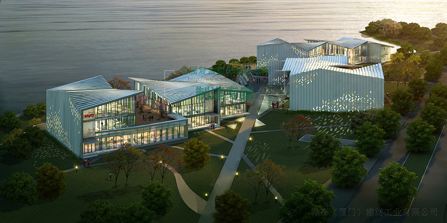蚌埠龙子湖公园文化中心项目是首个三明治板墙体与夜景相结和的项目,帷森为其开发提供的是集保温、隔热、夜景、装饰功能于一体的MWCP100-J3三明治板墙体系统。该系统将LED灯内嵌于板材内,实现夜景效果的同时保证板材具有良好的气密性和水密性。考虑到管线外露会影响美观及使用寿命,我们在板材生产过程中预先将管线内置于板内,现场无需再次加工,满足设计要求的同时安装亦更加简便快捷。帷森拥有自己的研发团队,我们会根据每个项目的需求来为客户提供量身定做的产品应用方案,以最大限度地满足业主的要求、实现建筑师的建筑设想。