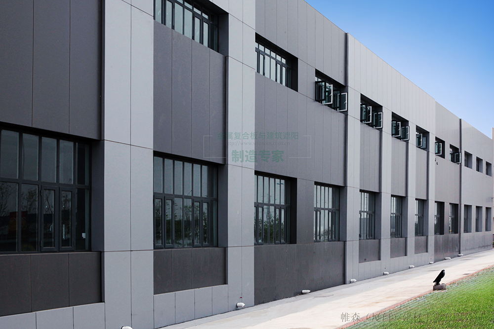 帷森EIC25C-J10铝蜂窝板采用扣件式的安装方式,满足金属幕墙热胀冷缩要求的同时,安装极为简便。深灰与浅灰两种色调的铝蜂窝板相互搭配、交相呼应,使整个装饰面大气而不失活力,沉稳而不失威严。不同的板块尺寸分割与布局,将整个外立面划分为不同的区间,巧妙的线条布局使整个建筑物更具有立体感与空间感。此外,在外墙转角及窗户边缘处,帷森为其设计并提供一体式的无缝转角板,最大限度了满足了设计师对研发中心外形简洁利落的设计要求。