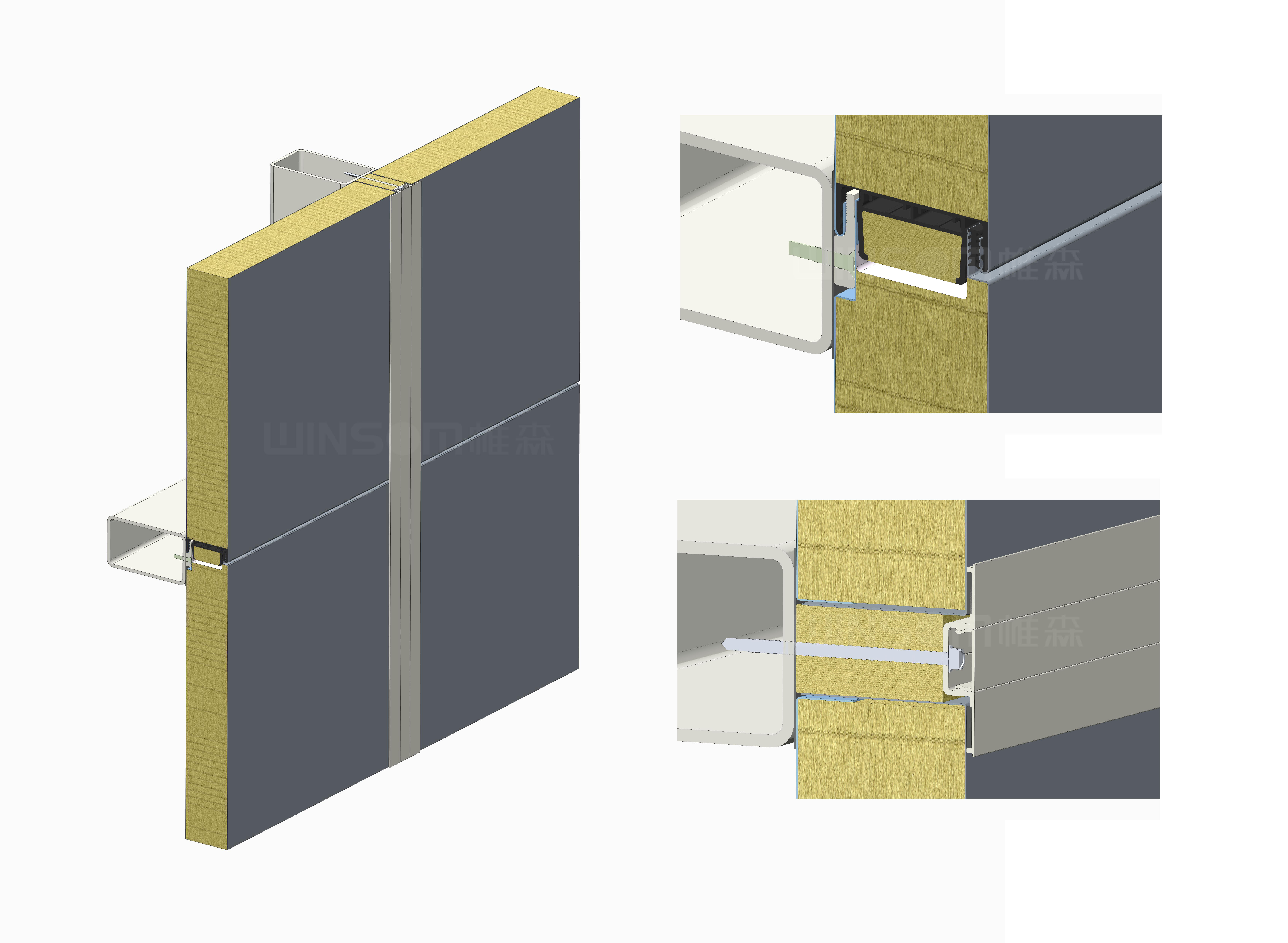 帷森为一汽大众项目提供的三明治板采用专用扣件以扣压方式将板材固定在龙骨上,而非拉铆或穿透式安装,彻底避免了板面的穿透破坏,同时能够满足墙体在温度变化时的热胀冷缩。