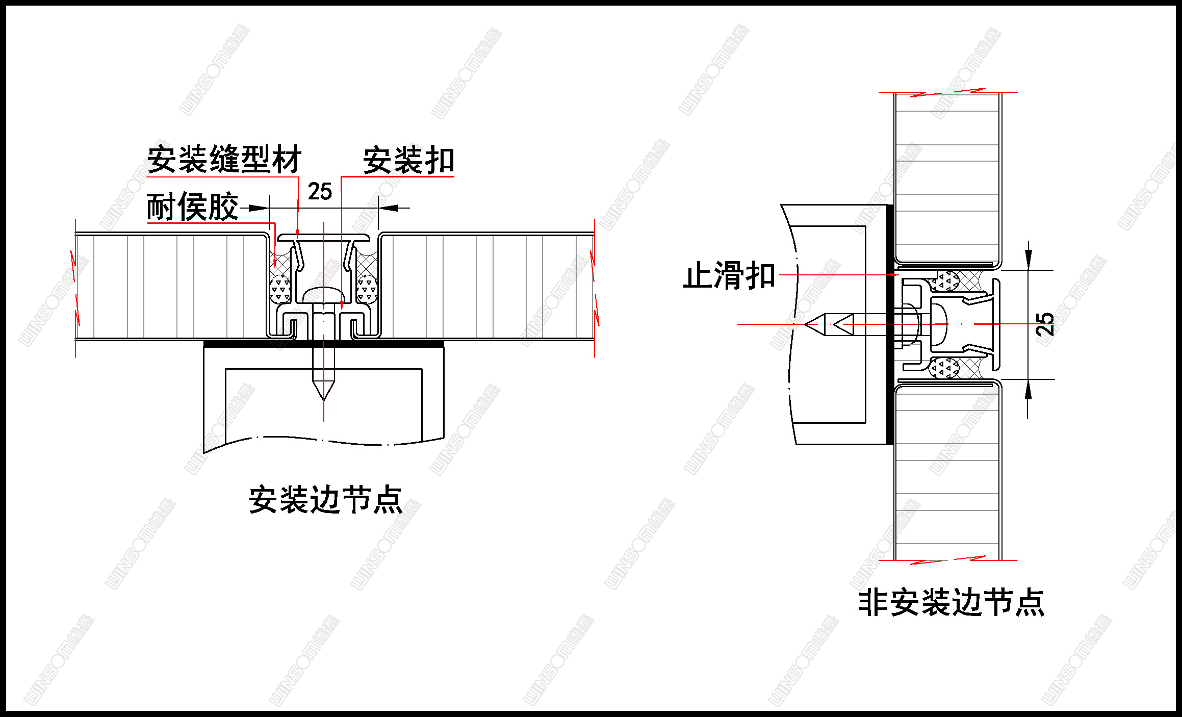 隐形安装扣件,可以消除因热胀冷缩造成的建筑误差;