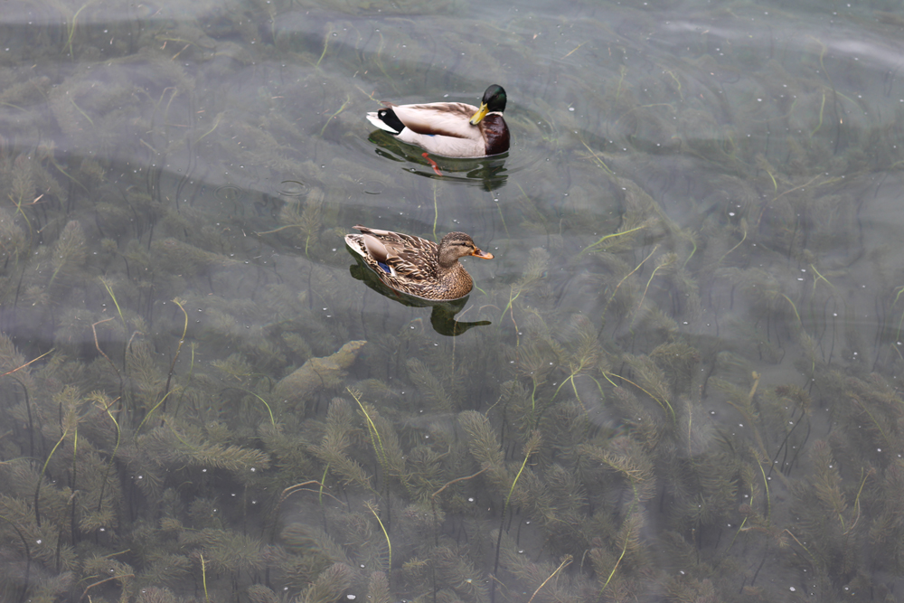 竹外桃花三两枝,春江水暖鸭先知。水面上两只水鸭嬉戏,荡起一圈圈涟漪。