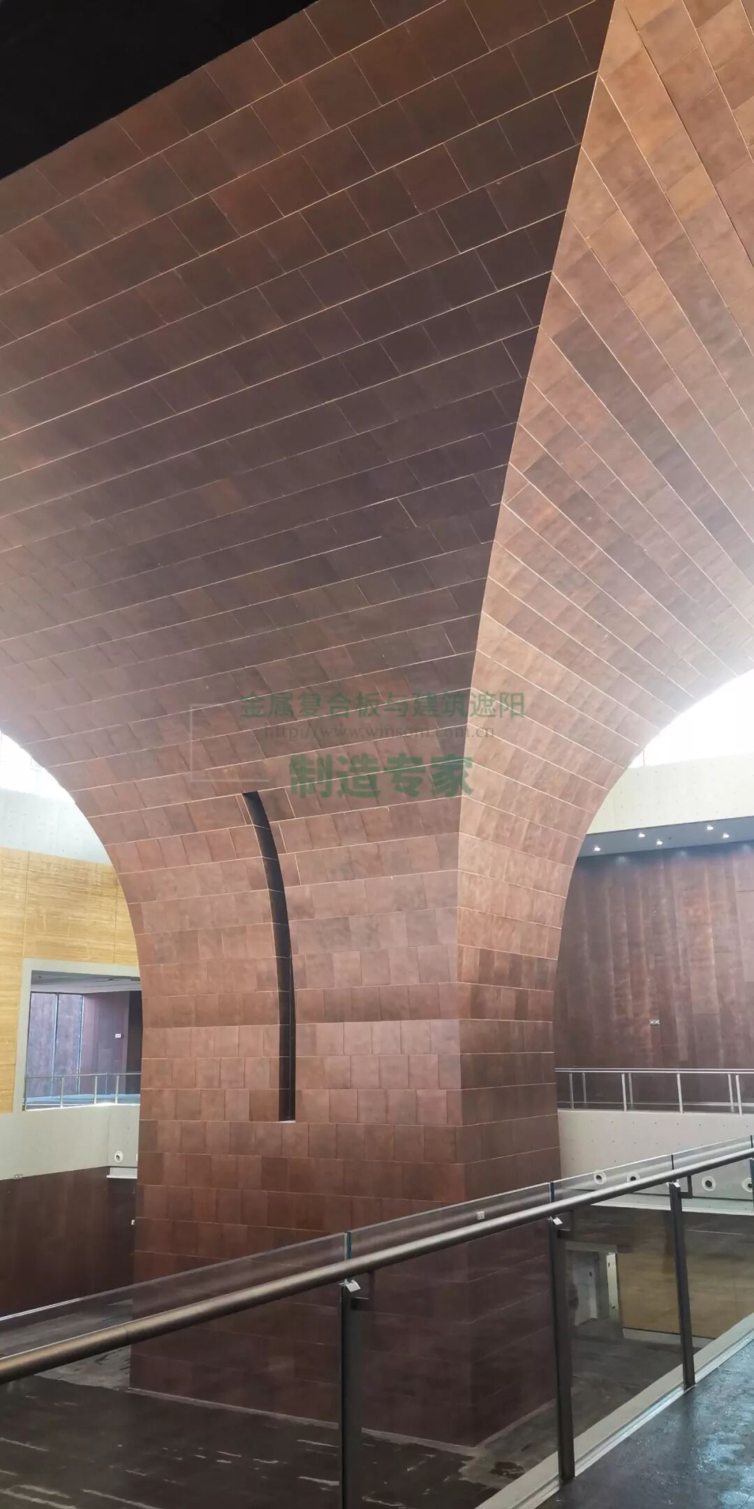 二里头夏都遗址博物馆大量使用夯土及紫铜装饰,是迄今为止世界上铜板装饰数量最大的单体建筑。帷森作为唯一的幕墙装饰、室内精装修铜板供应商,为其提供了铜铝热熔蜂窝板、铜蜂窝板、特殊造型铜单板等紫铜产品超过26,000平方米。