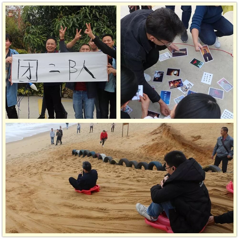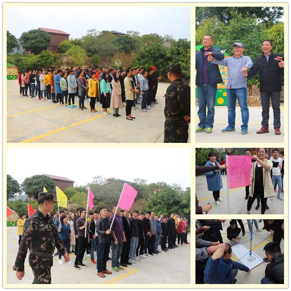闪过的早晨时光带过午休时刻,第一天下午的行程便是户外拓展项目,此活动远比印象中有趣,值得回味:好玩的分组前戏,逗人的按摩操热身,组织工作人员幽默风趣的个性带团风格让人印象深刻,期间有各队自行组建创意的队名、标志、口号、队形的展示,以及小组团队“绳拉巨笔”一起完成的毛笔字——“团队”、还有“急速60秒”的比拼,无不充分体现了大家团结协作、热情向上地干劲,欢呼声、呐喊声、加油声时刻响彻整个山庄!