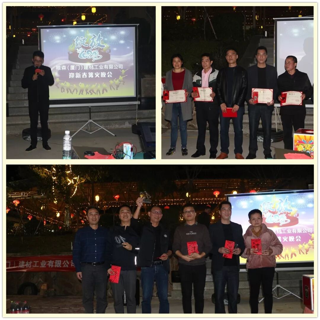 美好的时光总是短暂、流逝的,转眼夜幕降临整个山庄,篝火晚会就快要开始了,烧烤是重头戏,袅袅炊烟笼罩整个露天会场,反而给灯光下的会场增添了几许的仙气。帷森家人们在烧烤中的互帮互助,让这个冬夜不再寒冷;领导入心肺腑的新年祝福与期望,让每个帷森人心中更具拼搏的力量!晚会环节中还有每一轮激动人心的抽奖活动以及年资服务奖的颁发,无不是公司对帷森家人们的一番体恤和感恩!