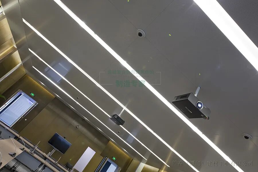 帷森吸音蜂窝板不仅满足吸音降噪的要求,其防火等级可满足A1级的防火要求,打造安静空间的同时满足公共区域的防火要求。因此,尤其适用于会议室、音乐厅、影剧院、实验室、大堂、厂房车间等场所的室内吊顶与墙面。