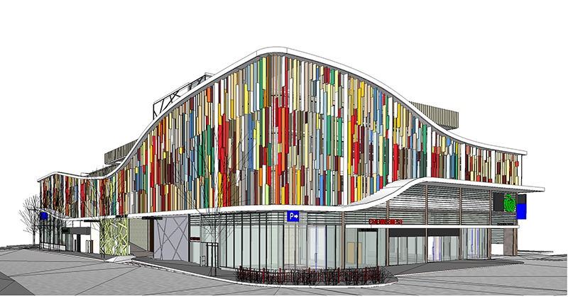 Woolworths is one of the biggest food retailers which have more than one thousand stores in Australia. Covering 3200SQM, the new building have 4 floors. With innovative design and special style, 31 colors of aluminum honeycomb fins are installed on the facade to achieve sunshading and colorful decoration effect. Based on design requirements, mixing three different fin widths and different colors of fins orderly on outside facade, colorful and orderly lines revealsthe vitality and charm of city.