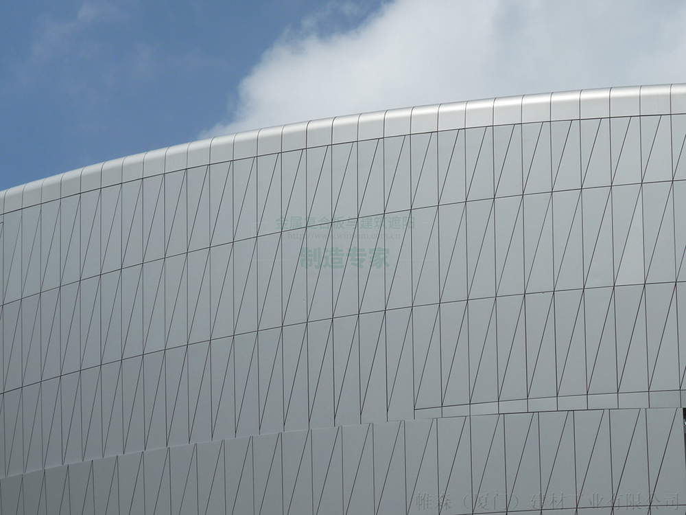 成都大魔方演艺中心项目位于成都市天府大道沿线,聘请曾担当上海世博文化中心场馆设计的上海华东建筑设计研究院担纲设计。其建成将成为成都最具奇迹效应的标志建筑体。 演艺中心主要由大、小陀螺两部分组成,其中,大陀螺高46.6米,东西轴直径148米、南北轴直径152米,大陀螺由舞台区、观众看台区、休息和其他功能区等组成,平面近似圆形;小陀螺最高标高31.32米,直径67米。 帷森FIC系列铝蜂窝板应用于演艺中心外墙,板总厚度为60mm(含铝附框),颜色为金属灰色,采用高度为3-4米的三角形铝蜂窝板勾勒出整个错落有序的立体装饰面,穹顶应用双曲造型板。远看造型壮观流畅,近看金属线条简洁明快。此次大魔方演艺中心的造型独特,不但施工难度系数大,对金属外墙材料的要求也极为严格,从蜂窝板的原材料、加工工艺到安装都经过严格的考察与筛选。帷森为本项目量身定做的FIC10-J25铝蜂窝板外墙系统,选用高精级的原材料,采用行业内最为先进的辊压成型技术及热压复合技术进行成型复合,所有板材在帷森工厂加工制作完成现场无需任何二次加工,安装系统科学合理地满足热胀冷缩及建筑误差的安装要求,致力于打造平整、流畅、经久耐用的金属装饰面。